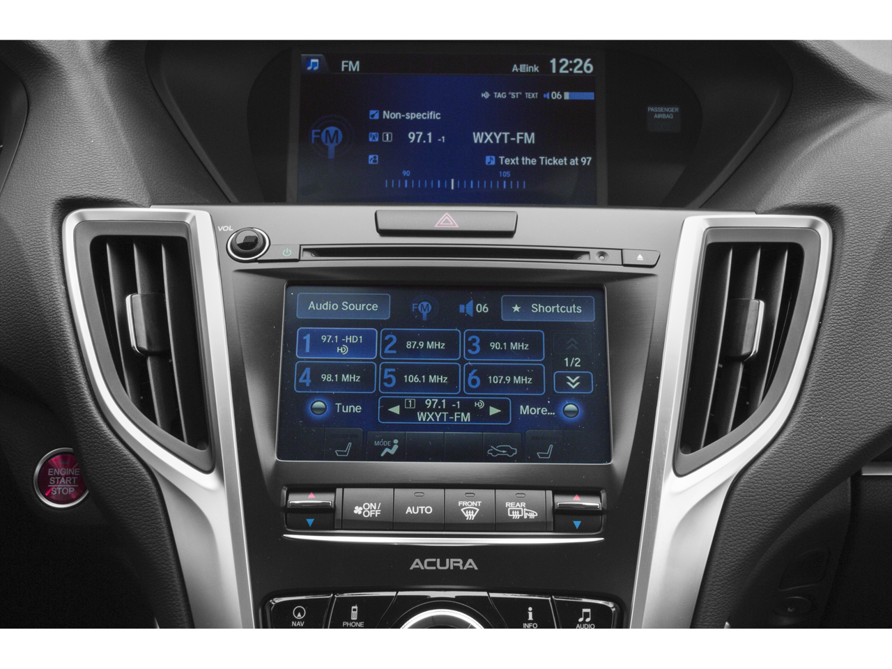 - Radio: Acura/ELS Studio Premium Audio System -inc: 10 speakers, Song By Voice, Aha compatibility, HD Radio, SiriusXM satellite radio, Pandora compatibility, USB audio interface w/iPod integration, Bluetooth® streaming audio, MP3/Auxiliary input jack, speed-sensitive volume compensation