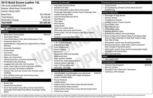 Experience the perfect blend of style, comfort, and capability in this exceptional 2015 Buick Encore Leather. Visit our showroom today and let us demonstrate why this SUV is the wise choice for your next vehicle.