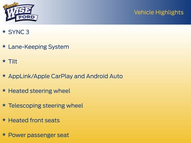 - Radio w/MP3 Player, Clock, Steering Wheel Controls, Voice Activation and SYNC 3 External Memory Control