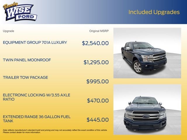 Experience the absolute pinnacle of truck luxury in this stunning Blue Jeans Metallic 2018 Ford F-150 Platinum 4WD Inventory. This isn't just a work truck; it's an executive suite on wheels, loaded with the Equipment Group 701A Luxury Package Window Sticker. Powered by the legendary 5.0L V8 engine and a smooth 10-speed automatic, this truck delivers effortless power for towing or cruising.
