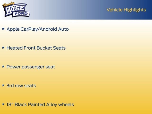 - Radio: 160-Watt AM/FM/HD/SiriusXM Audio System -inc: 6 speakers, subwoofer, multi-zone audio, Bluetooth® HandsFreeLink, Bluetooth® streaming audio, MP3/auxiliary input jack, radio data system (RDS), SMS text message function, 2.5-amp USB audio interface port in front, 2.5-amp USB charging port in center console, 2 2.5-amp USB charging ports in second row, CabinControl remote compatibility, 8" display audio w/high-resolution (720P) electrostatic touch-screen and customizable feature settings, Apple CarPlay/Android Auto, illuminated steering wheel-mounted audio controls and black fin-type roof-mounted antenna