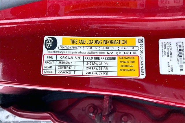 - Tires, 255/65R17 all-season, blackwall